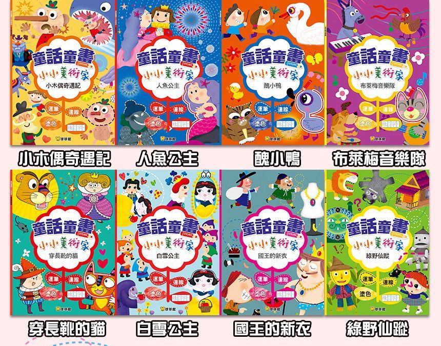 球球館繁體字兒童早教繪畫本童話故事童書塗色練字貼啟蒙益智圖書 阿拉丁神燈系列+小木偶奇遇系列 共16冊